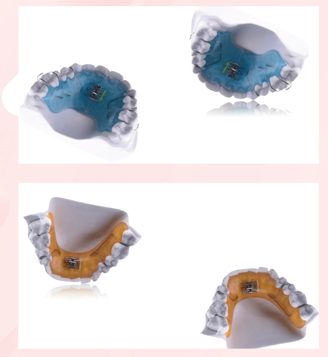 Guides the mandible forward, using the upper and lower guides to apply force to achieve a normal occlusal relationship. It can also guide the mandible backward to correct an underbite. (For deep overbites or underbites exceeding 6-7mm, screw adjustments can be added to the guides.)