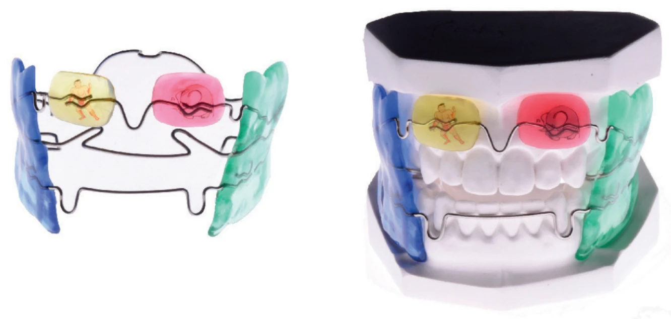 Corrects misaligned teeth and underbite by using tongue reeds to push the teeth into position.